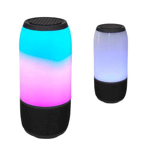 Bocina bluetooth con luz LED de modalidad intercambiable o fija, entrada de auxiliar, entrada USB, tarjeta TF, entrada DC 5 V y función manos libres, Capacidad de carga de 1200 mAh y potencia de salidad de 8W.