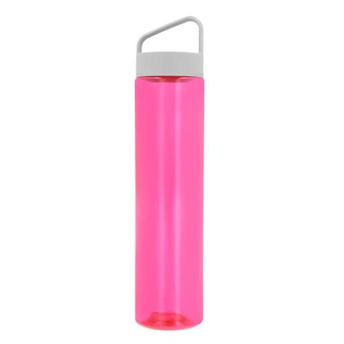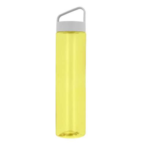 Cilindro de plástico de color traslúcido con tapa enrosacable y chupón para evitar derrames.
