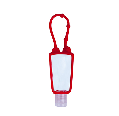 Gel antibacterial en botella con funda de silicón.