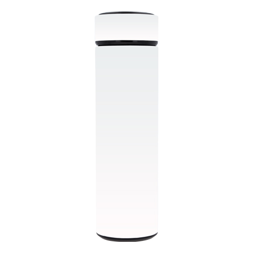 Termo con doble pared de acero inoxidable con termómetro digital que mide la temperatura de tu bebida, colador metálico y tapa enroscable. Incluye batería.
