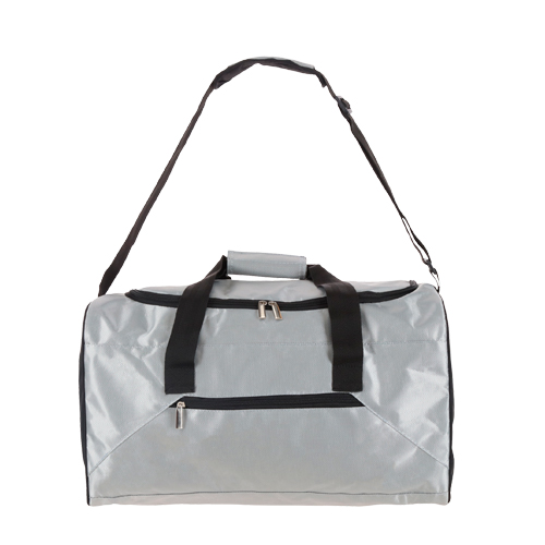 Maleta deportiva con un compartimento principal reforzado, asas sujetadoras con velcro, correa ajustable, un compartimento frontal y fuelle.