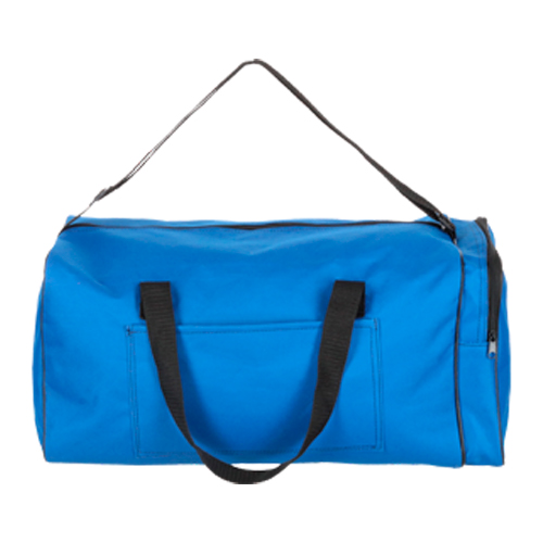 Maleta deportiva de 1 compartimento con bolsa frontal, bolsa lateral de cierre, asas, fuelle de 27 cm y correa ajustable.