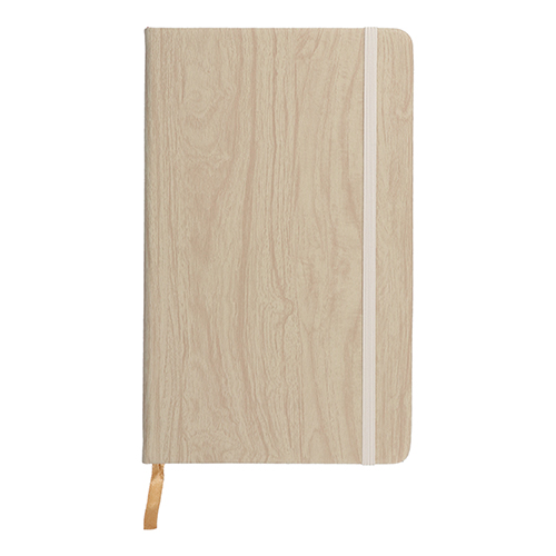 Libreta con pasta texturizada, banda elástica para sujetar cubierta, sobre y separador con 90 hojas