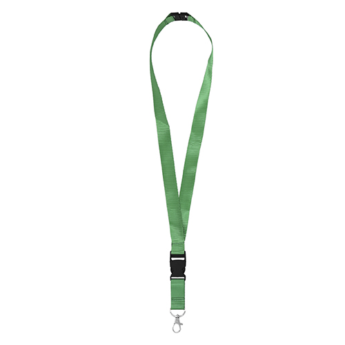 Cinta portagafete con broche de seguridad, clip desmontable de plástico y gancho metálico.