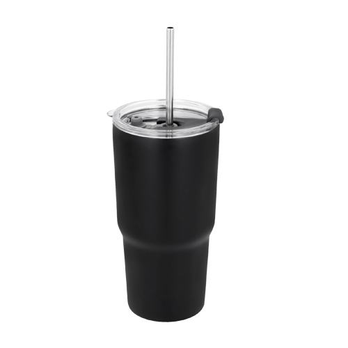 Termo con doble pared de acero inoxidable con tapa traslúcida y cierre a presión, boquilla de seguridad de plástico, boquilla de silicón cubre popote y popote metálico incluido.