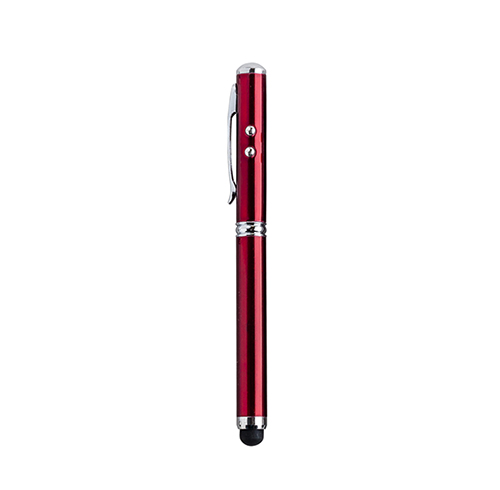 Bolígrafo de aluminio con luz blanca, láser y goma óptica touch screen. Incluye 3 baterías.