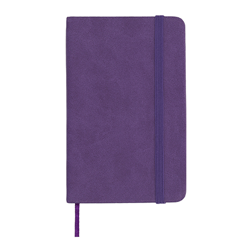 Mini libreta de poliuretano con 80 hojas de raya y banda elástica para sujetar cubierta.