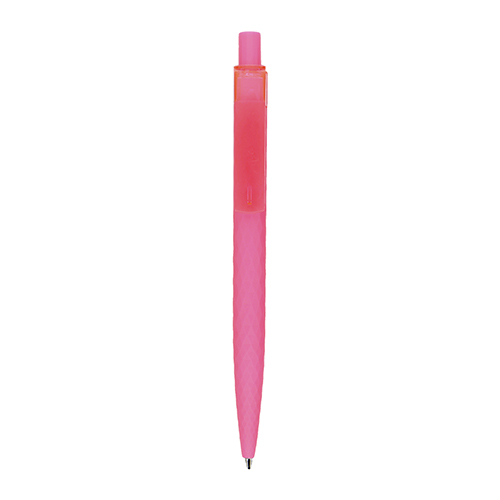 Bolígrafo de plástico con clip transparente.
