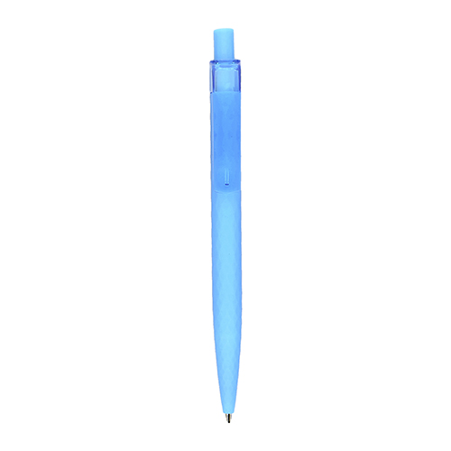 Bolígrafo de plástico con clip transparente.