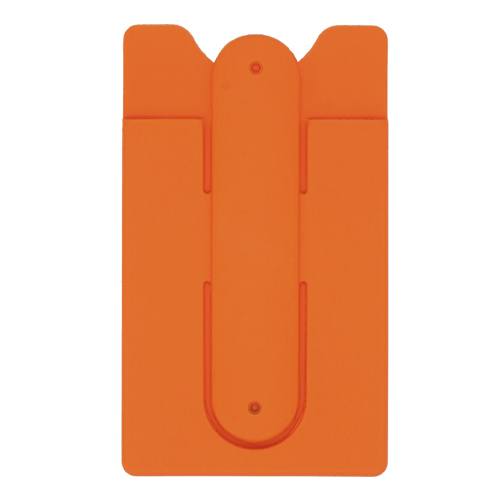 Porta tarjetero de silicón con clip retráctil que sirve como soporte para el celular y enrollar auriculares.