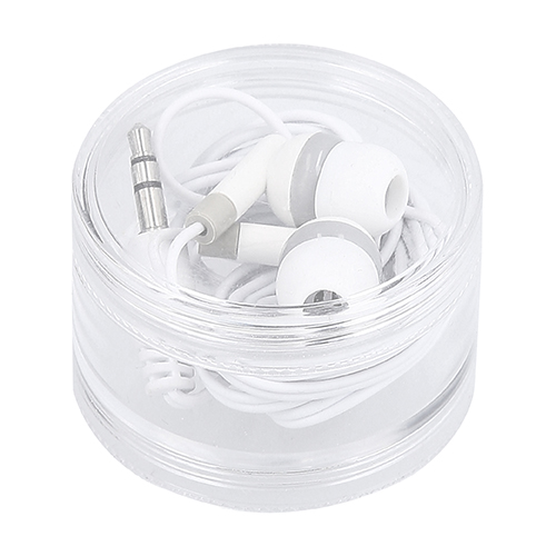 Audífonos con entrada de conexión de 3.5 mm. Con un largo de 1 metro 23 cm y gomas en los auriculares. Incluye estuche de plástico